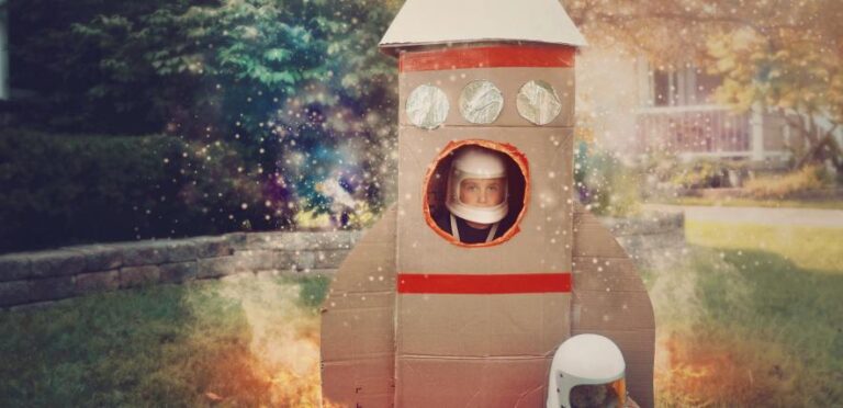 There’s a point during your child’s toddlerhood when they start to understand that they can pretend that a boring thing – say, a cardboard box – is an exciting thing, such as a boat, or a space rocket.